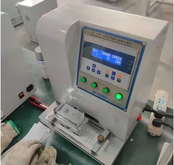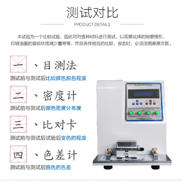 測試次數達到后,按停止鍵,取下標準摩擦紙以及試樣,接下來可通過測量摩擦前后墨層密度的或涂層厚度變化量,來判斷墨層或涂層的耐磨性。