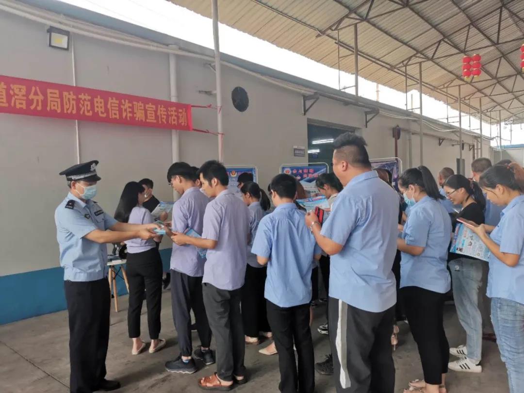 大羅沙社區(qū)民警向全體員工發(fā)放宣傳單,上面都有詳細(xì)的詐騙手法和辨別詐騙的辦法介紹,大家紛紛議論。社區(qū)民警還向大家分享近期發(fā)生的真實(shí)案例,讓大家印象深刻。