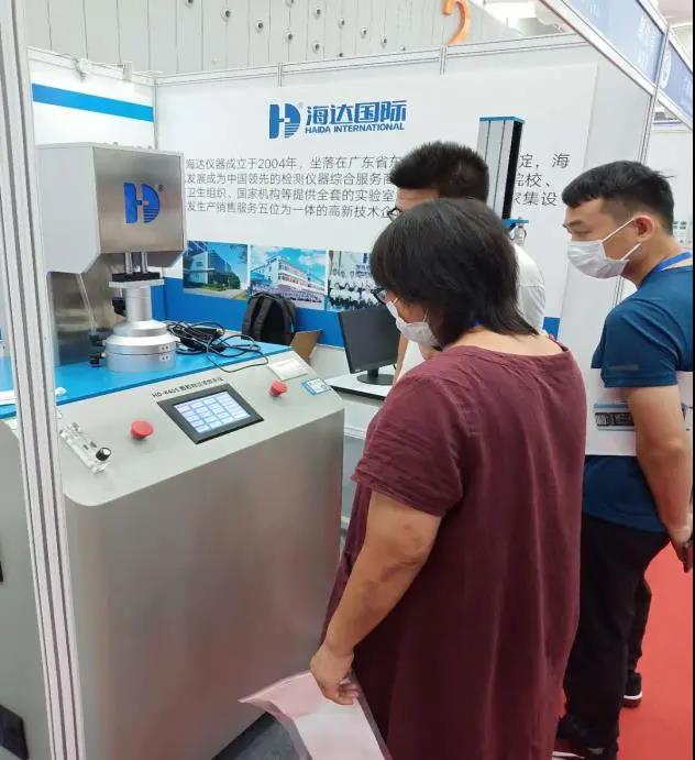 廣東海達儀器有限公司洞悉目前國內和國外檢測設備行業市場現狀,針對檢測設備進行研發。在本次展會上,海達展出了HD-K406口罩顆粒物過濾試驗機、HD-B609B-S萬能拉力試驗機、恒溫恒濕箱,得到了參展者的強烈興趣和廣泛關注。