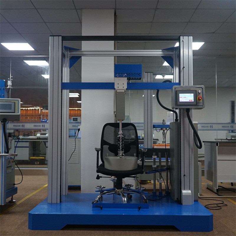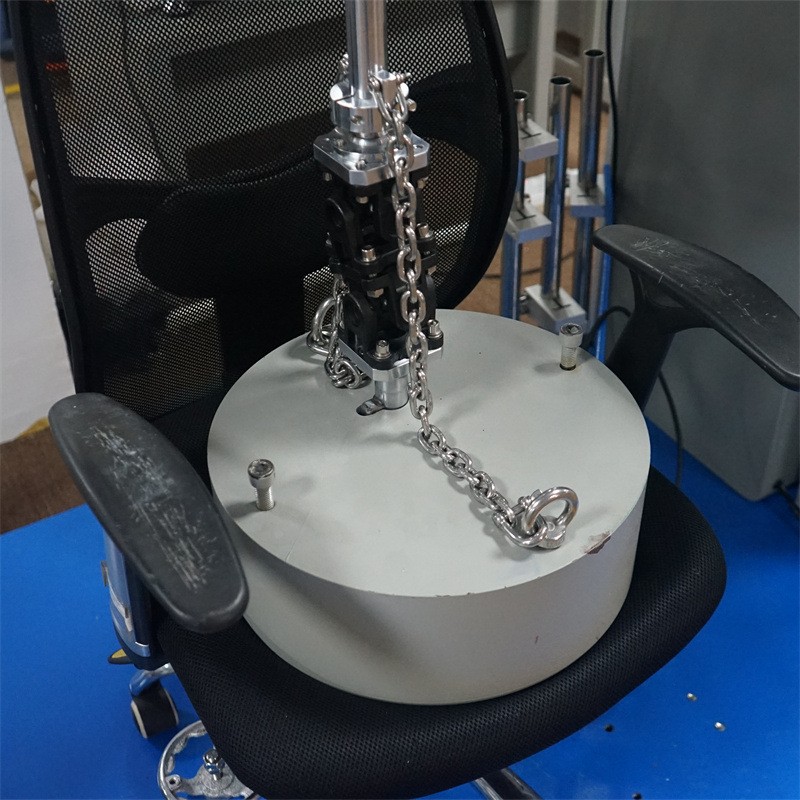 為確保測試結果的準確性和真實性,椅子旋轉試驗儀精心配置了可加載座面的測試砝碼,通過旋轉桿與萬向節的巧妙搭配,能夠適應椅子面的不同角度,模擬真實使用狀態下的旋轉受力情況。其簡易裝夾結構自帶自動調心功能,使得椅腳在測試過程中無垂直受力,有效避免了因受力不均導致的測試誤差。此外,儀器的測試橫梁高度可調,能夠輕松適配不同椅子的高度需求,進一步增強了其在各類旋轉椅測試中的普適性。而觸摸屏與PLC的結合,賦予了儀器高度的人機交互體驗與智能化控制能力,具備停斷電記憶力功能,即使在試驗過程中遭遇突發狀況,也能確保數據的完整保存與恢復。